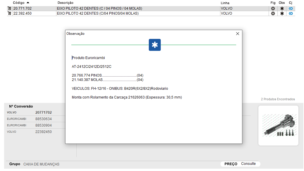 1932 - EIXO ENTALHADO CAMBIO VOLVO I-SHIFT AT2412C/AT2412D/AT2512C/AT2612D/AT2812C/AT2812D/ATO2512C/ATO2612D