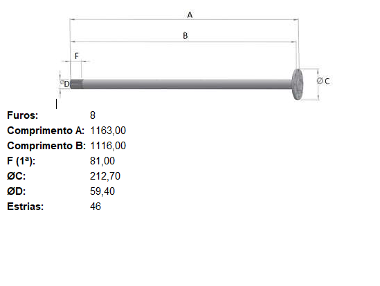 19685 - SEMI EIXO FORD CARGO/IVECO/VOLVO/VW DIF MS160/165/168 LONGO