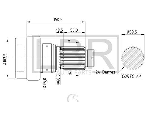 20522 - EIXO PILOTO CAMBIO FORD CARGO/VW/MB FS6206 ESTRIA GROSSA
