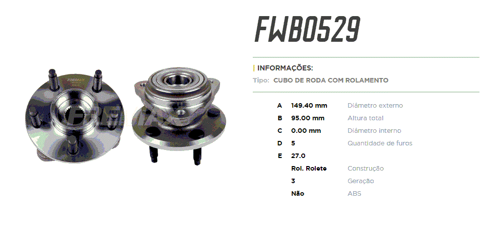 22450 - CUBO RODA DIANT C/ ROLAM FORD RANGER 2.3/2.5/2.8/3.0/4.0 98/... S/RODA LIVRE 5-FUROS