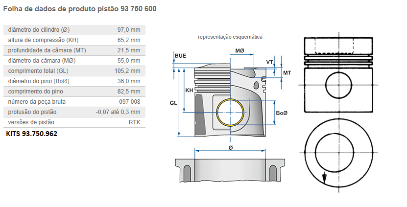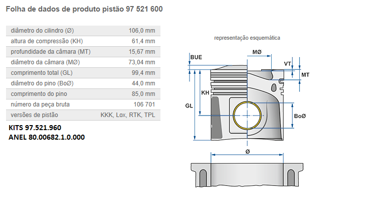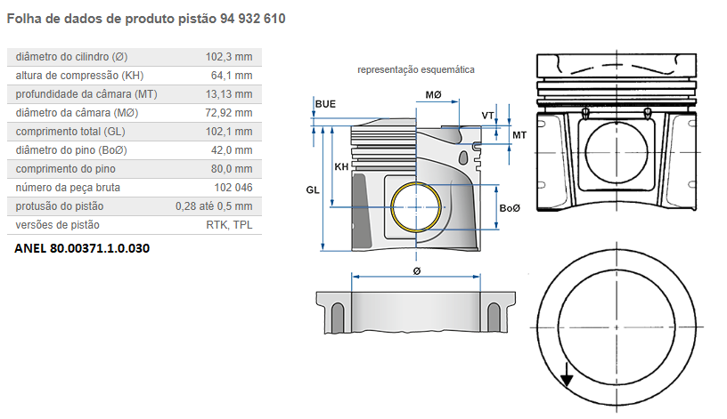 2268 - PISTAO C/ANEL MOTOR MB OM-924/926 LA ELETRONICO EURO 5 PINO PISTAO 44MM C/ CANAL REFRIG