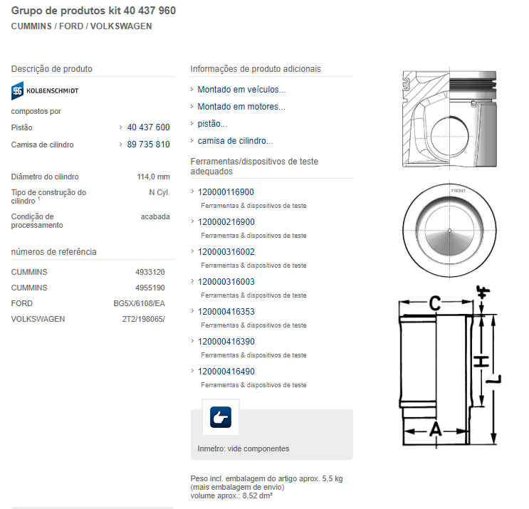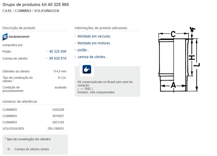 22991 - KITS MOTOR FORD CARGO/VW CUMMINS SERIE C 6ISCE TITAN CONSTELATION 320 CV
