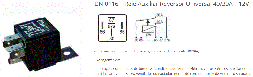 23447 - RELE AUXILIAR SCANIA/VOLVO/MB/UNIVERSAL 12V 40/30A 5-TERMINAL