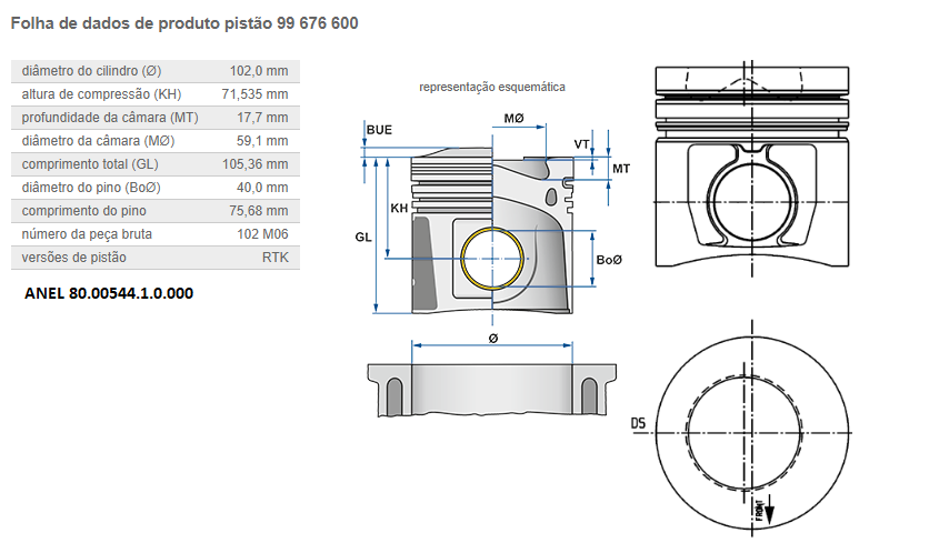 23588 - PISTAO C/ANEL MOTOR GM/PERKINS Q20B 6354 C/COLARIM
