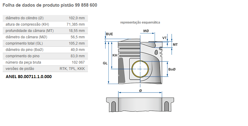 23571 - PISTAO C/ANEL MOTOR FORD CARGO/VW CUMMINS SERIE B BT 0.00 STD USA CAMISA CI-26480