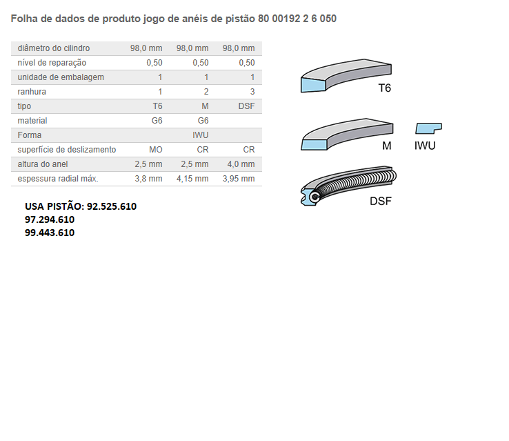 23753 - ANEL MOTOR MB 364/366/A/LA 0.50 P/1 CILINDRO 1618/1620/1720