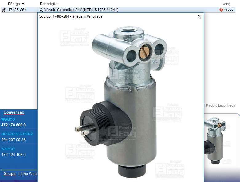 23960 - VALVULA SOLENOIDE MB WABCO 24V 1935/1941