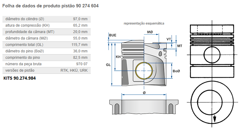 25955 - PISTAO C/ANEL MOTOR MB 352 5-CAN S/REB ANEL FERRO