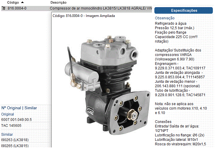26305 - COMPRESSOR AR MWM/VW TD229/6 D229/4 D229/6 KNORR 1-CIL 225CC