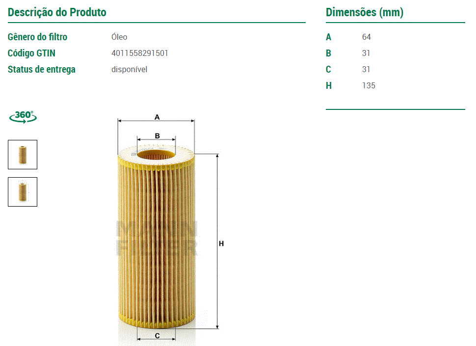 26525 - FILTRO LUBRIF MB 715C OM612LA 64X31X31X135 MM
