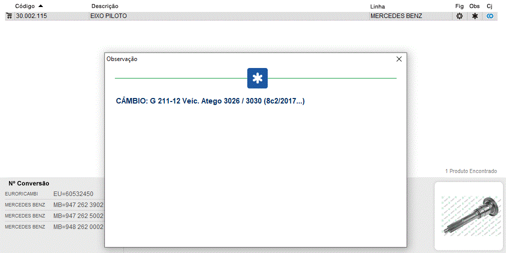 26565 - EIXO PILOTO CAMBIO MB ATEGO G 211