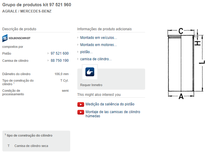 2745 - KITS MOTOR MB OM-924/926 LA ELETRONICO EURO 5 PINO PISTAO 44MM PISTAO C/ CANAL REFRIG