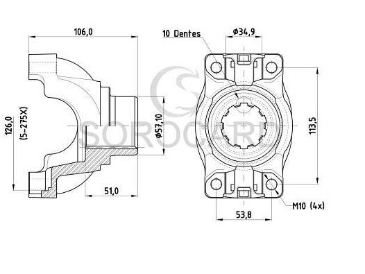 2749 - FLANGE CARDAN VW/FORD 1415/F11000/11.140 10-ESTRIAS