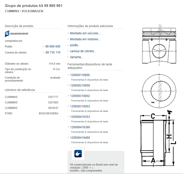 28023 - KITS MOTOR FORD CARGO/VW CUMMINS SERIE C 6CTAA 8.3L 00/...