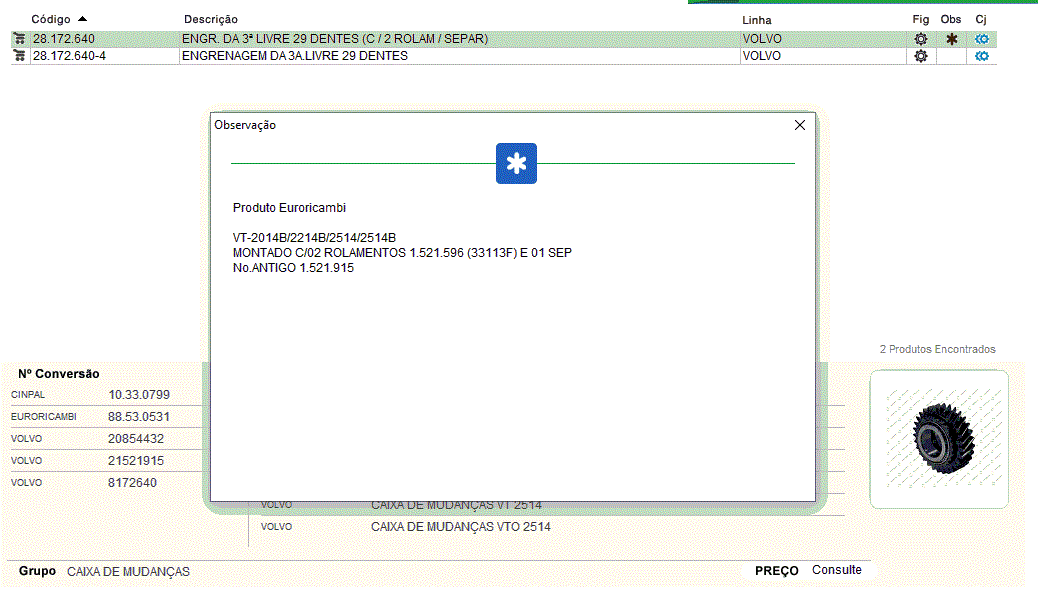 28194 - ENGRENAGEM CAMBIO MB/VOLVO 2-SUP 16S-1600