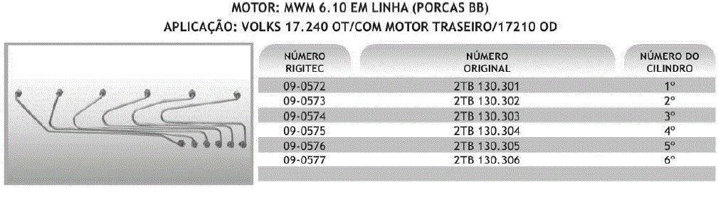 28340 - CANO INJ MWM 6.10/6.10T VW 17.240 OT/17.210 OD ONIBUS BOMBA-LINHA 5-CIL