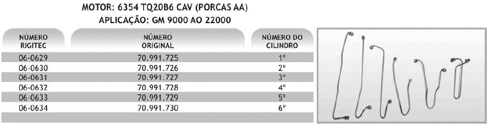 28551 - CANO INJ GM D9000/D11000/D22000 6354 Q20B6 BOMBA CAV 6-CIL