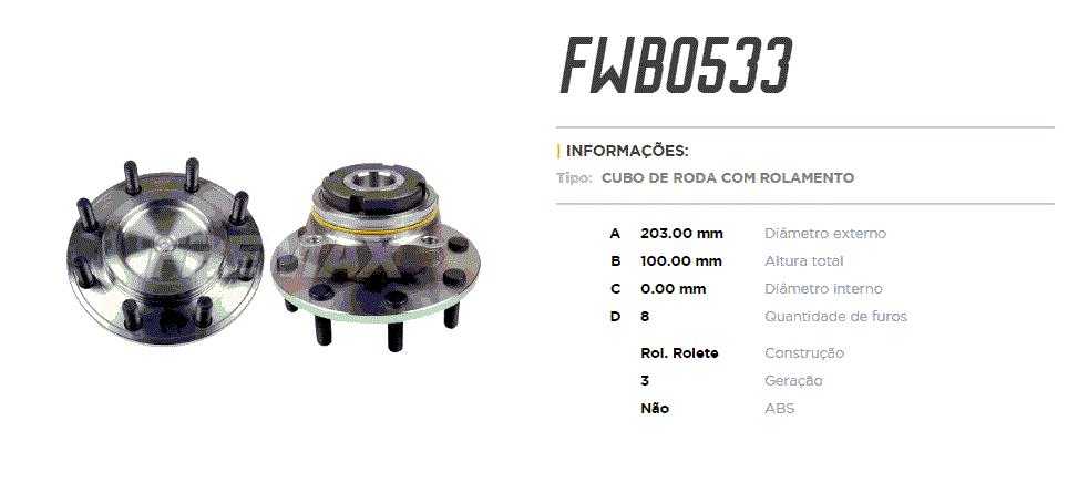 28885 - CUBO RODA DIANT C/ ROLAM FORD F4000 98/... 8-FUROS