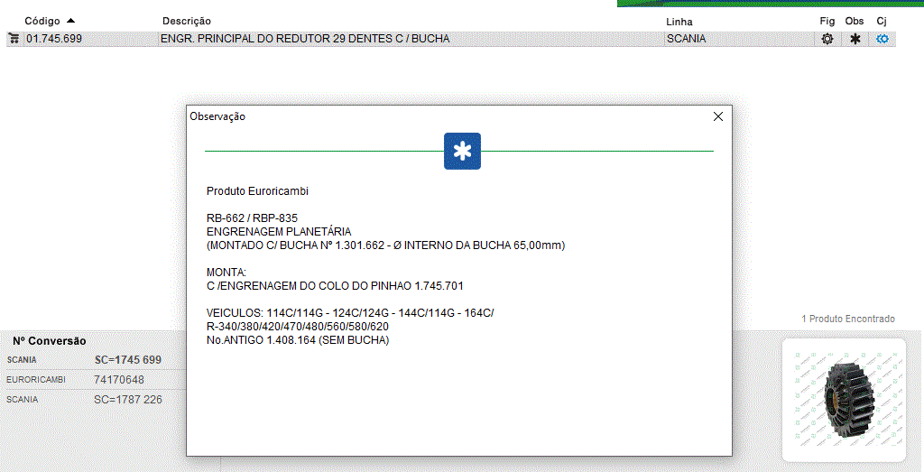 28941 - ENGRENAGEM INTERM SCANIA C/ BUCHA RB662/RBP835 MODERNO 65 MM