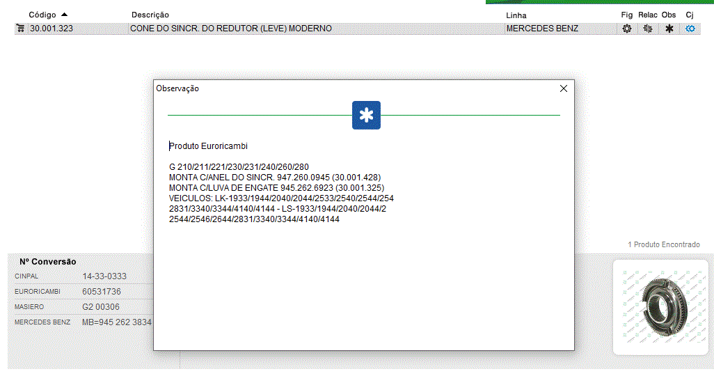 29776 - CONE SINCRONIZADO CAMBIO PESADA MB G 221 MODERNO