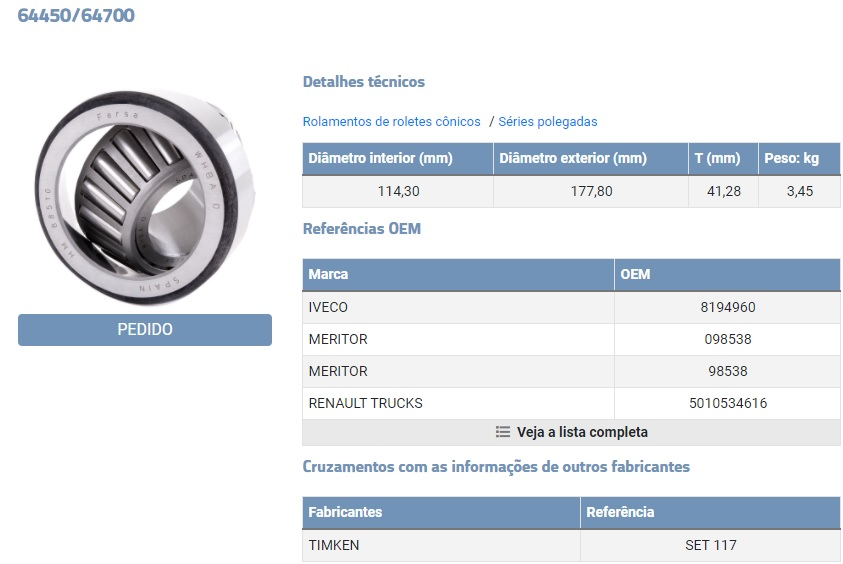 29945 - ROLAMENTO RODA DIANT EXT VOLVO OLEO EIXO N/NL/NH/FH