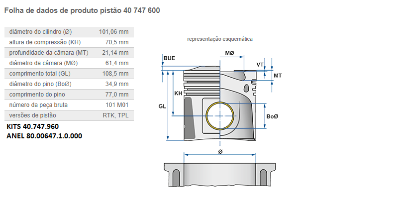 29966 - PISTAO C/ANEL MOTOR GM/PERKINS 4.248