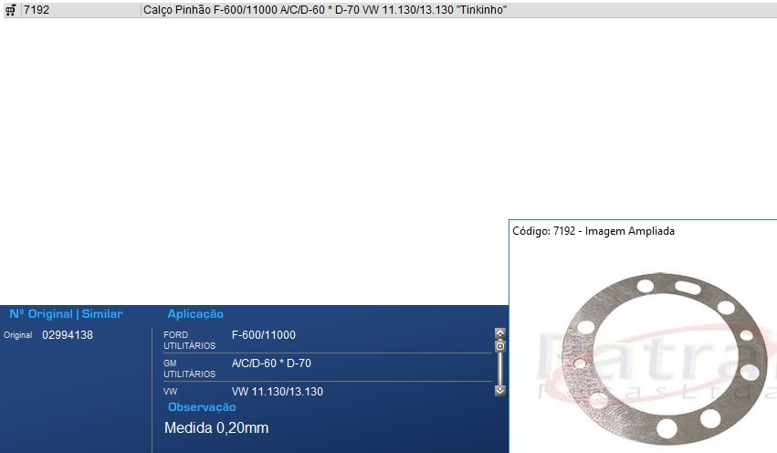 30267 - CALCO REG PINHAO FORD/GM/VW F13000/F22000/D70/11.130/13.130 TINKAO 0,20MM