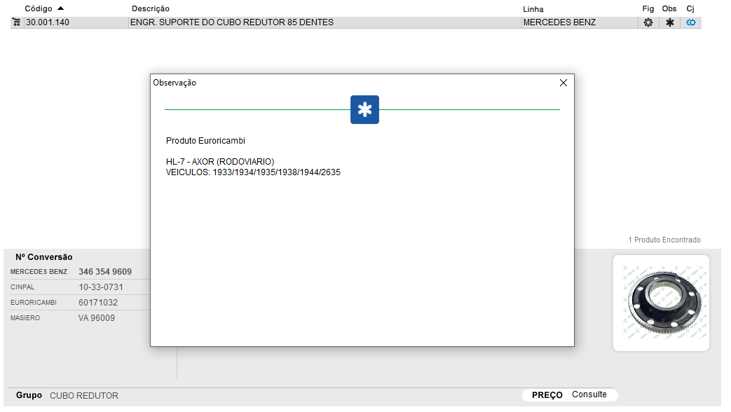 30466 - ENGRENAGEM SUPORTE ANELAR CUBO REDUTOR MB AXOR 1944/1933/2035/2040/2044/2533/2540/2544/2640/2644