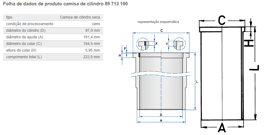 30925 - CAMISA MOTOR MB 314/352/364/366 1.00=0.40 C/FLANGE