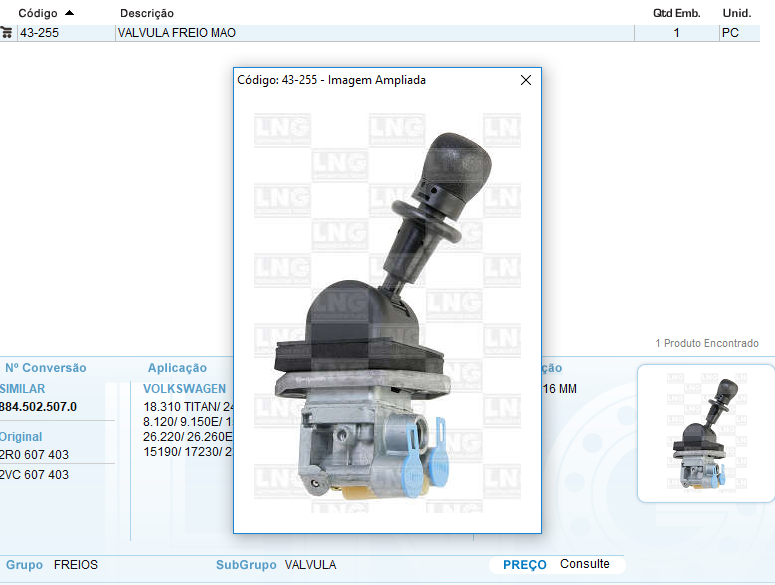 30952 - VALVULA FREIO MAO VW 8.150/9.150/13.150/13.180/15.180/26.260/26.310/40.300