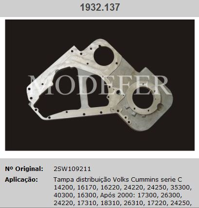 31707 - TAMPA DISTRIBUICAO DIANT INT FORD CARGO/VW CUMMINS C ENCAIXE BOMBA 117MM
