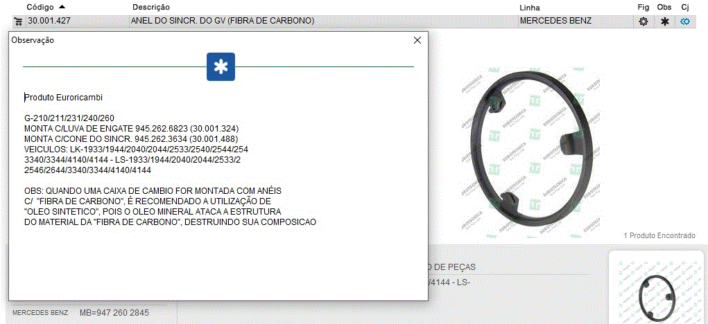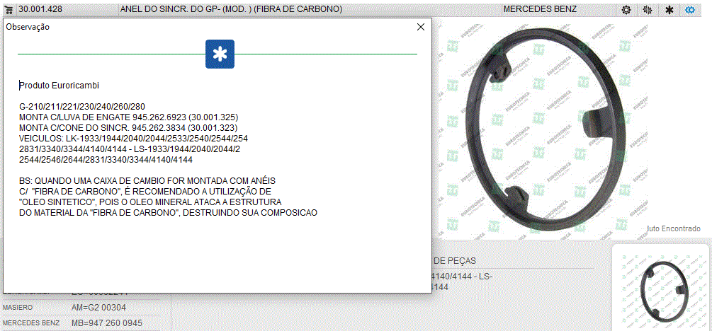 32851 - ANEL SINCRONIZADO PESADA CAMBIO MB G 131/210/221/230/231/240/241/260/280/281/330 MODERNO CARBONO 2ª GERACAO
