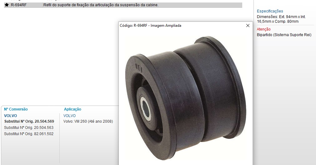 33834 - BUCHA ARTICULACAO CABINE VOLVO VM 240/260 BIPARTIDA