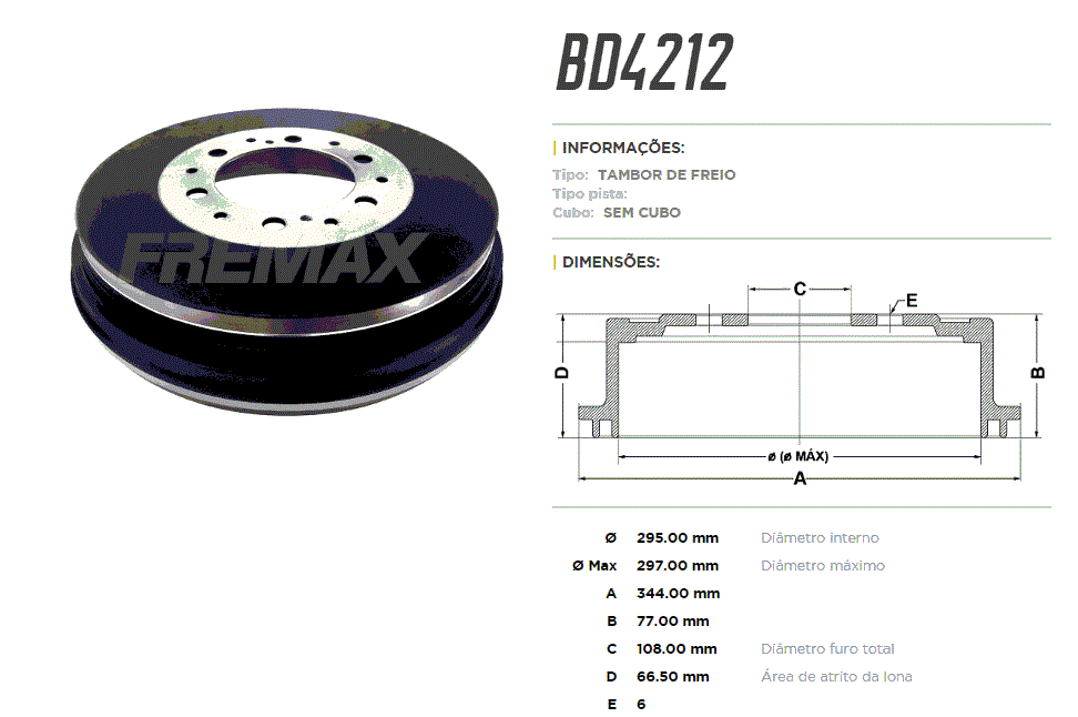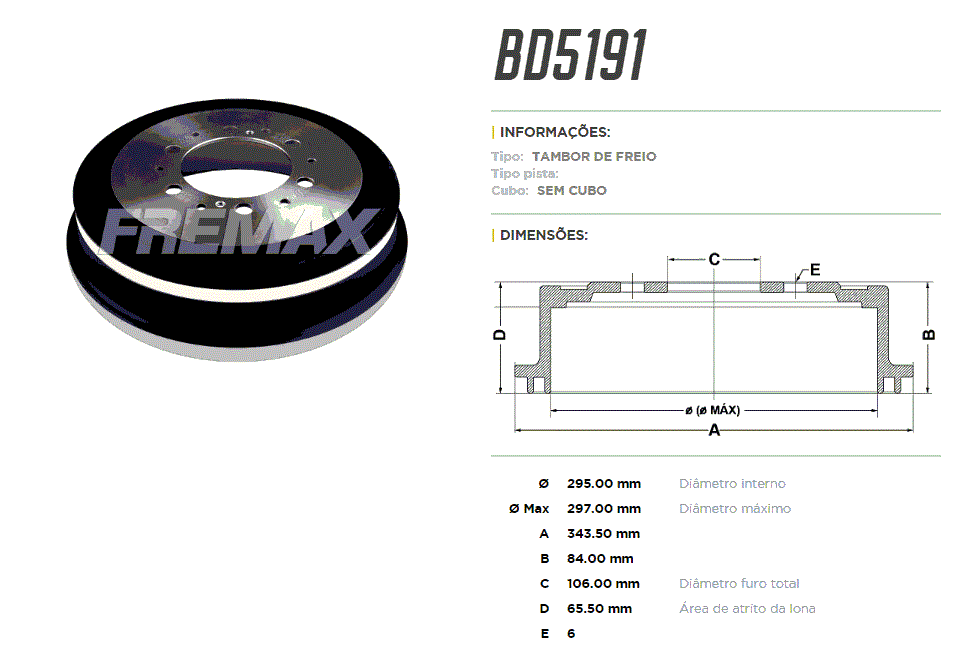 34314 - TAMBOR TRAS FORD F4000 96/98 6-FUR