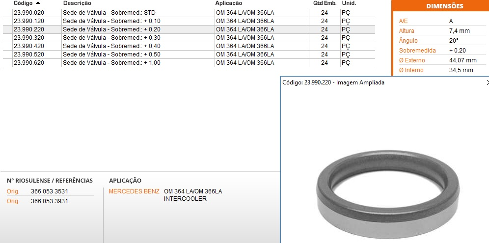 3477 - SEDE VALVULA ADMISSAO MB 364LA/366LA CAB.20 +0.10