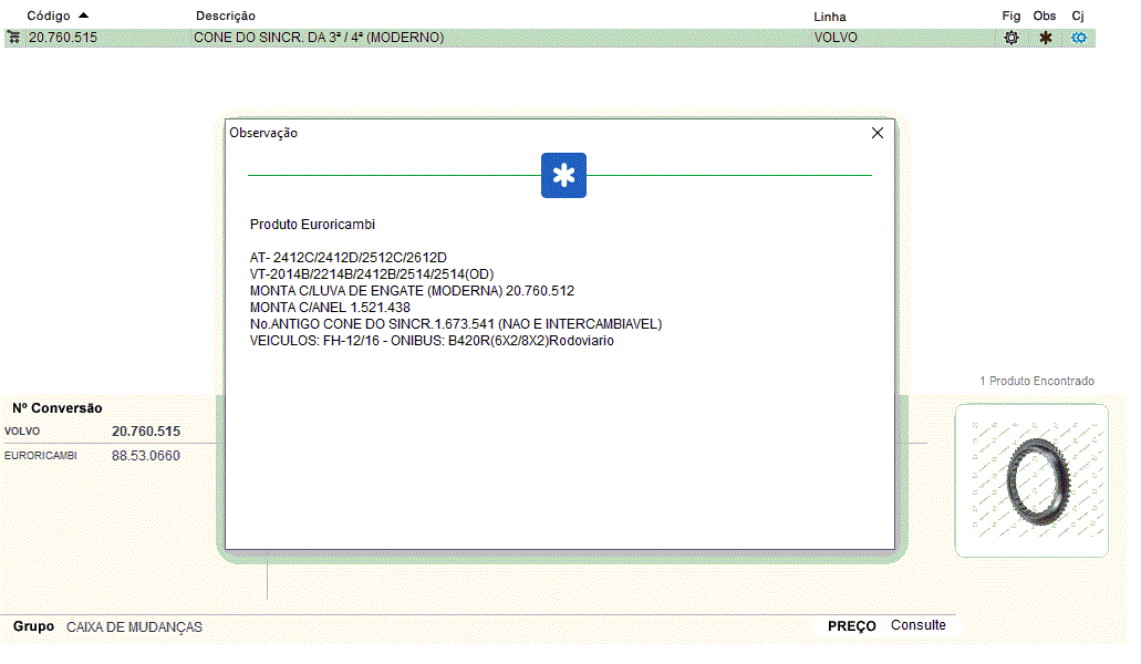 34955 - CONE SINCRONIZADOR CAMBIO VOLVO VT2014B/VT2214B/VT2514/VTO2514 MODERNO