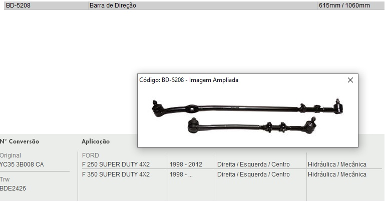 35528 - BARRA DIRECAO FORD CENTRAL F1000 92/96 LONGA