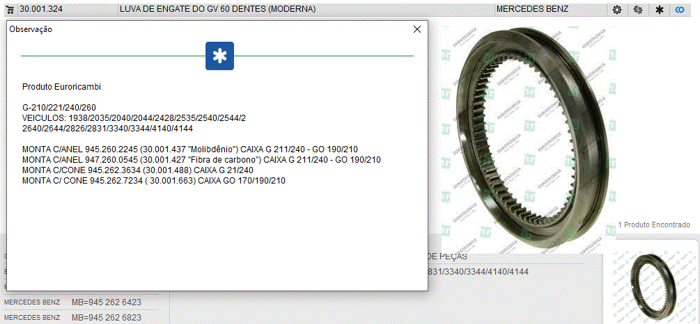 35842 - ANEL INTERNO SINCRONIZADOR CAMBIO MB G 60/85 1/2