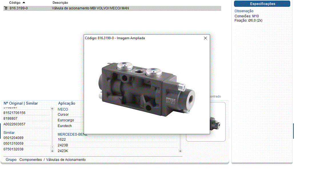 36801 - VALVULA SOL ACION FREIO MOTOR REDUZIDA MB OF1620 12V