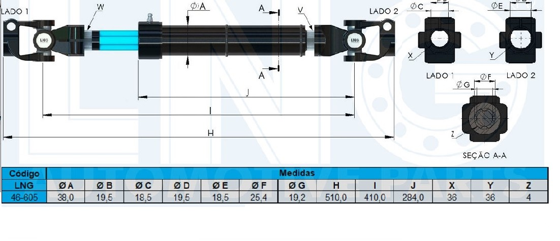 37257 - EIXO COLUNA DIRECAO INFERIOR FORD CARGO 1317/1517/2622/4031 2002/2006