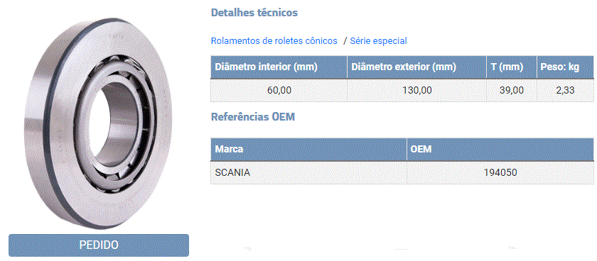 37772 - ROLAMENTO PINHAO DIANT PEQ SCANIA R752/R770/R653