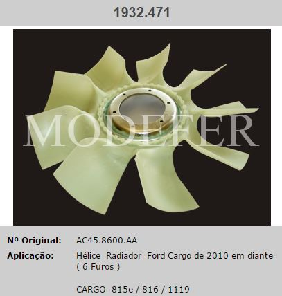 37911 - HELICE PLASTICO FORD CARGO 815E/816/1119 CUMMINS 06/... 9-PAS