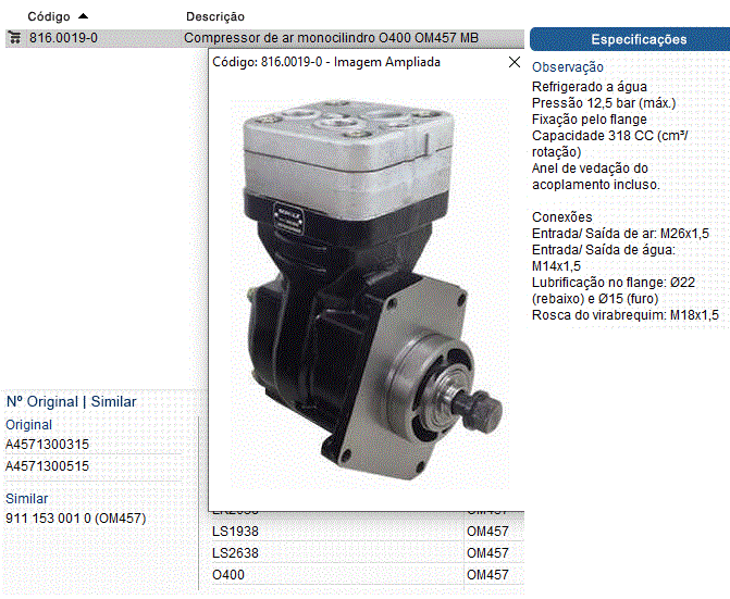 38172 - COMPRESSOR AR MB OM-457 1938/2638/0400 MODELO WABCO 1-CIL 318CC