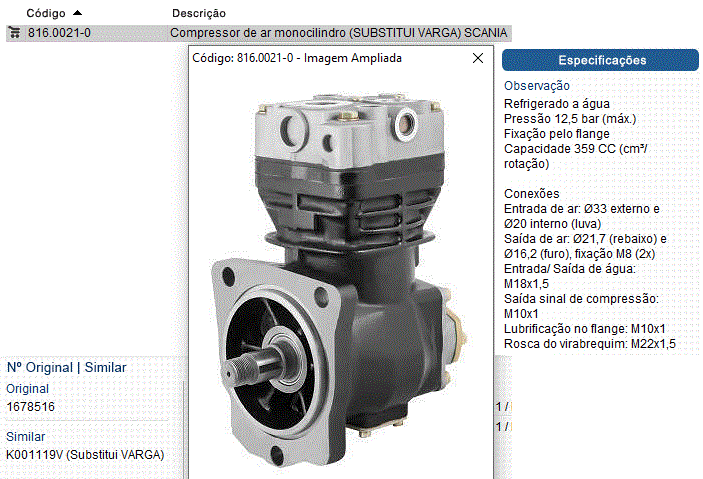 38175 - COMPRESSOR AR SCANIA 112/113 DUPLO VARGA 2-CIL 363CC