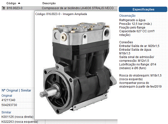 38176 - COMPRESSOR AR IVECO STRALLIS 2-CIL 627CC