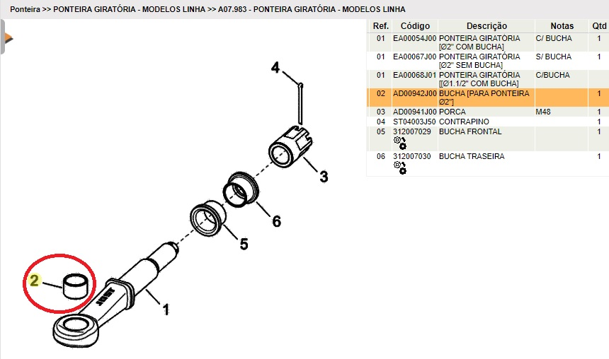 38576 - BUCHA PONTEIRA ENGATE JULIETA RANDON BARRA TRACAO 48MM USAR PORCA BAIXA