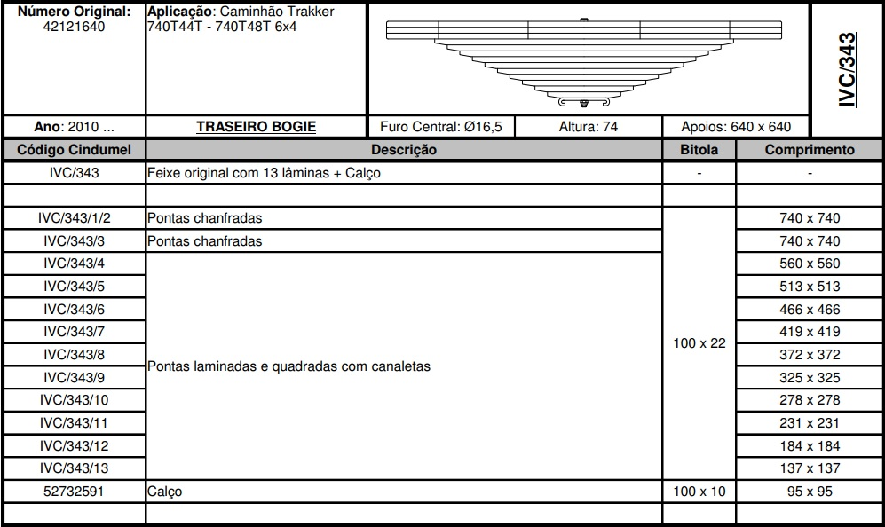 38707 - FECHO MOLA FECHO TRAS IVECO TRAKKER 740T44T/740T48T 6X4 BOGIE 13 LAMINAS + CALCOS