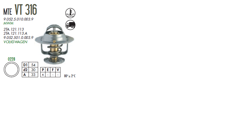 38753 - VALVULA TERMOSTATICA VW 13.150 MWM 6.10TCA/4.10TCA 80 GRAUS