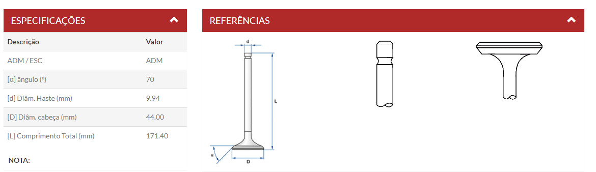 39110 - VALVULA CABECOTE ADMISSAO GM/PERKINS 6.357