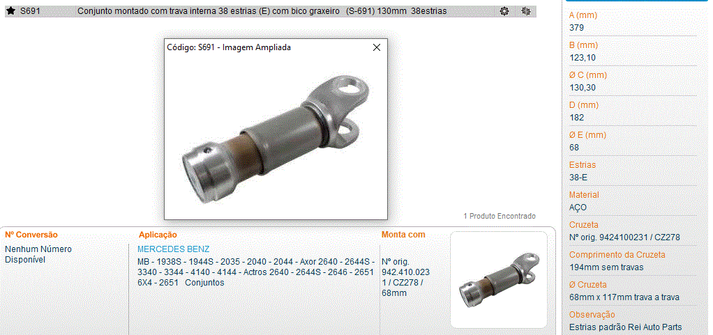 39499 - PONTEIRA CARDAN MB/FORD CARGO F12000/F14000/2218/712C/914C/LO914 ACO